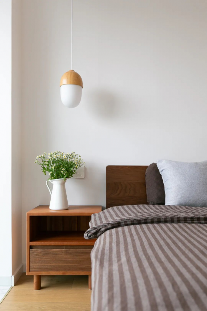 暖色系的自然木纹石晶地板,在极简的白色和木色的映衬下带来纯净舒适的基调,并且将空间的精细化布置技巧运用到极致,让空间富有富有温柔质感的同时,该有的功能也一样不落,应有尽有,极富现代设计感和实用性。