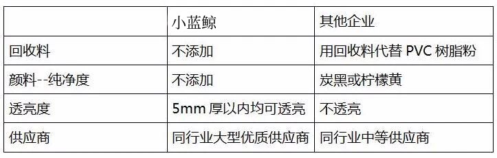 小蓝鲸石晶(曾用名跃步石晶)石晶地板材料保证是百分之百的全新料。小蓝鲸石晶地板主要成分为碳酸钙粉(石粉)和聚氯乙烯(PVC粉)3:1的比例混合而成,这两种成分的颜色都是白色的,所以生产出来的基材颜色基本上是白色或者浅黄色。那怎么样可以看出是全新料呢?我们可以用手电筒照4mm厚的地板,如果光线可以穿透地板,则可能是全新料;若不能,那么肯定不是全新料?;亓系幕囊话愣际呛谏模亓暇勐纫蚁㏄VC粉一般来源于平时日用的塑料用品,比如塑料水壶,塑料水瓶,塑料包装袋子,塑料仪器等等?;亓系匕宓娜钡悖孩俨换繁#丛床蝗范?,可能会有重金属等,有致癌风险;②结构不稳定,尺寸稳定性差。拼装后可能导致边缘翘曲等问题材料不可回收。